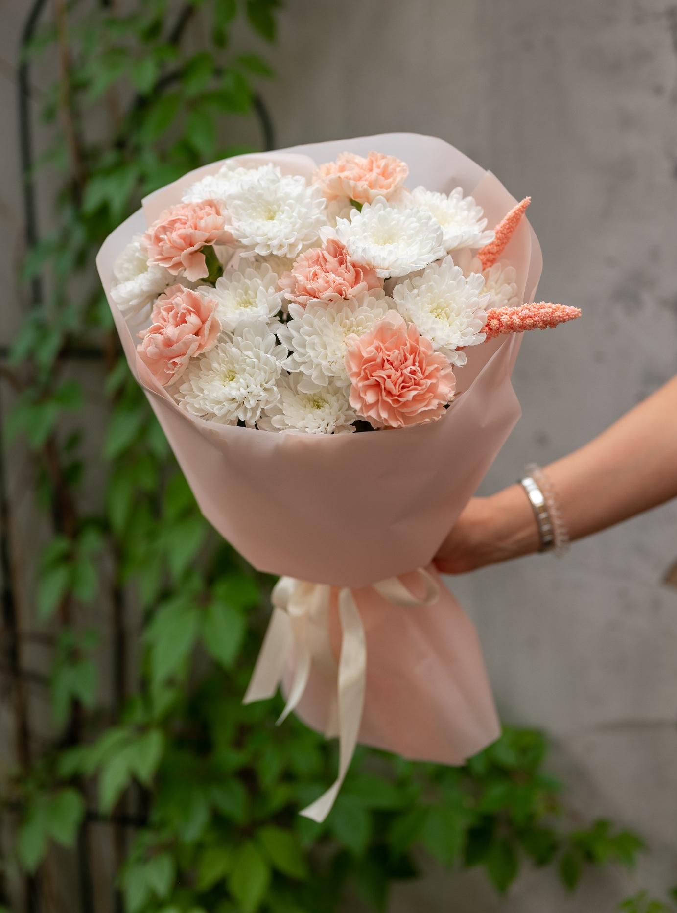 Хризантема кустовая, гвоздика, сухоцветы, оформление.