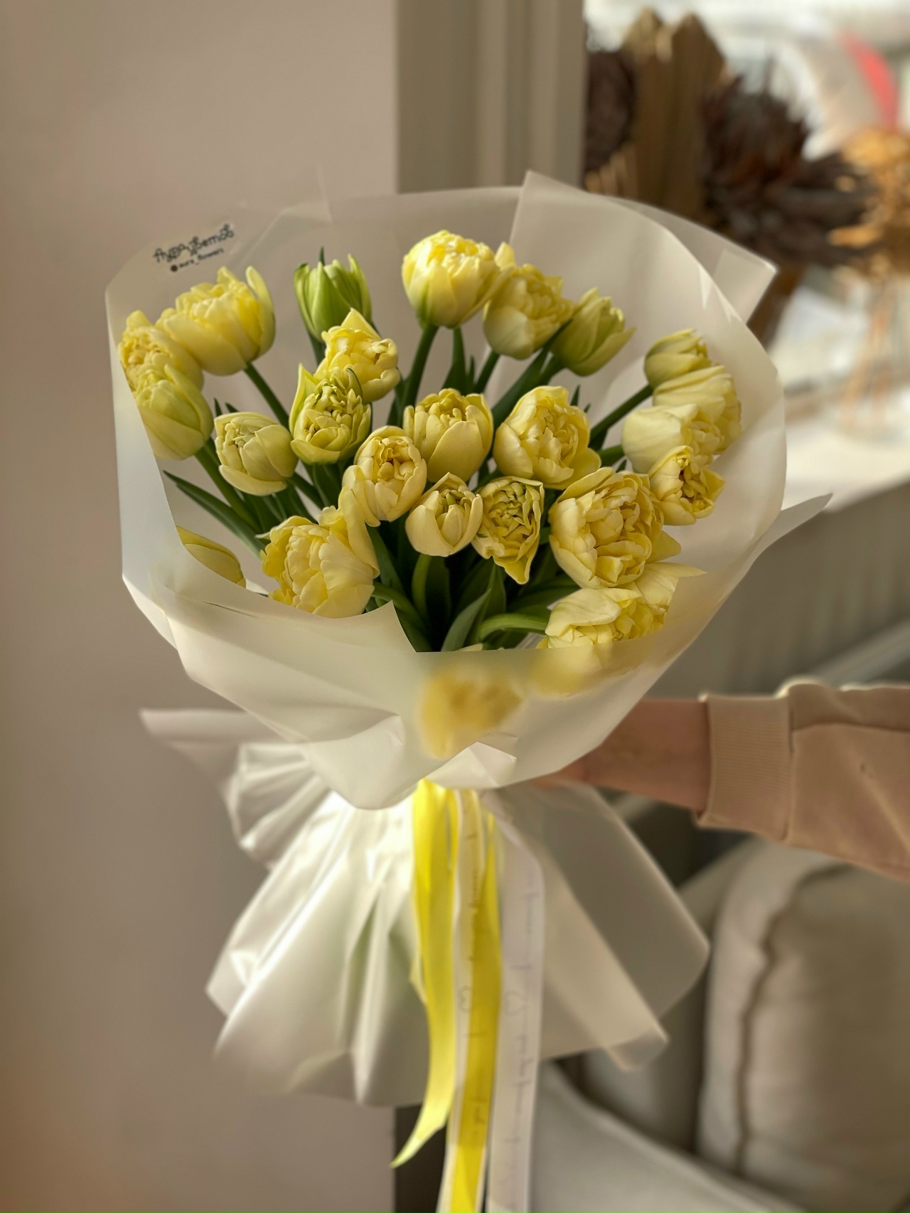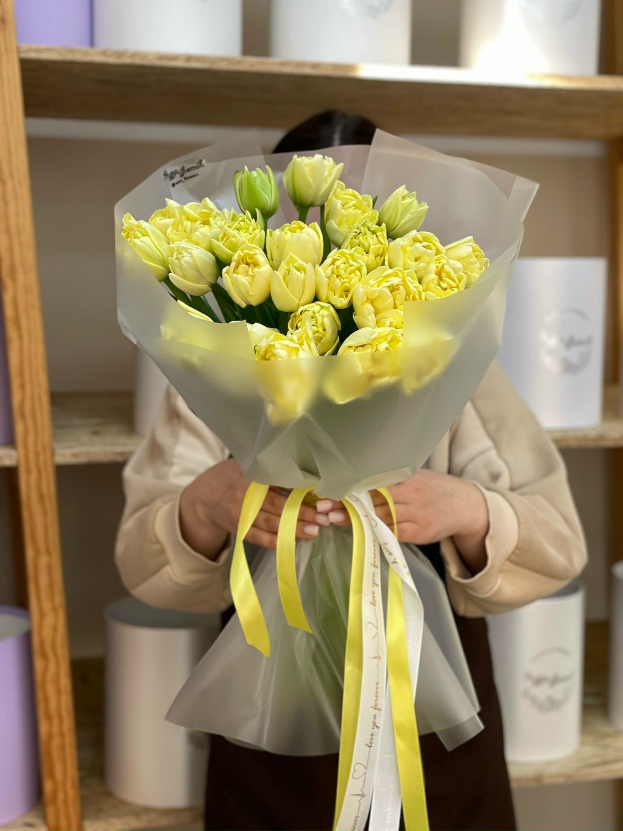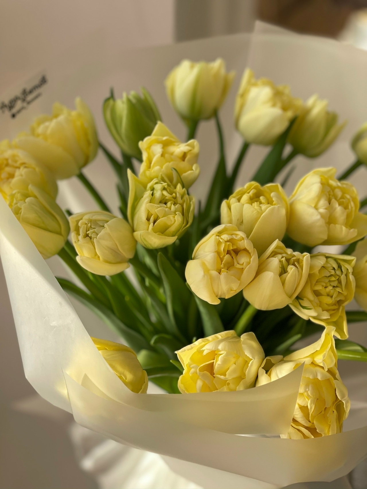 Букет из 25 пионовидных лимонных тюльпанов