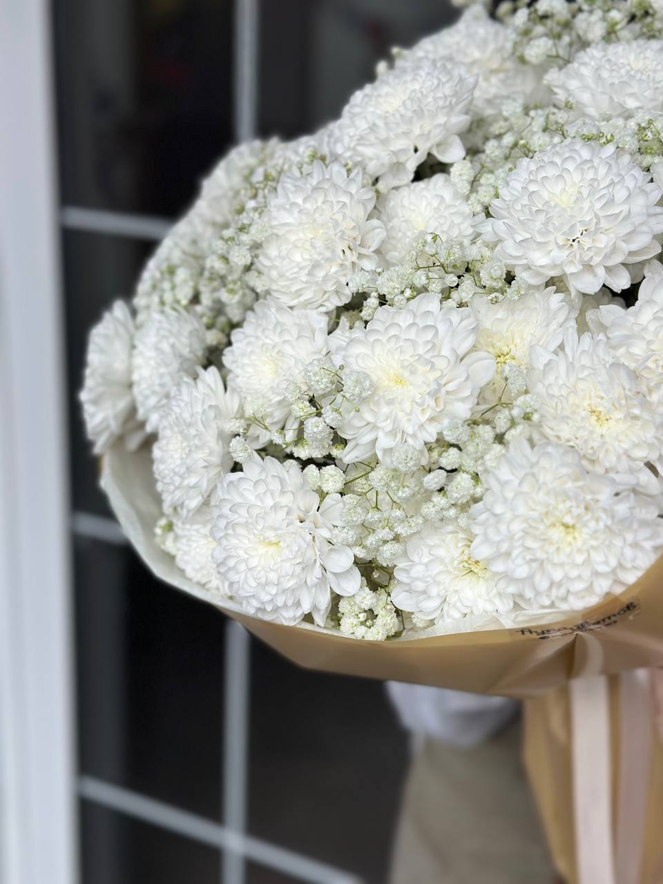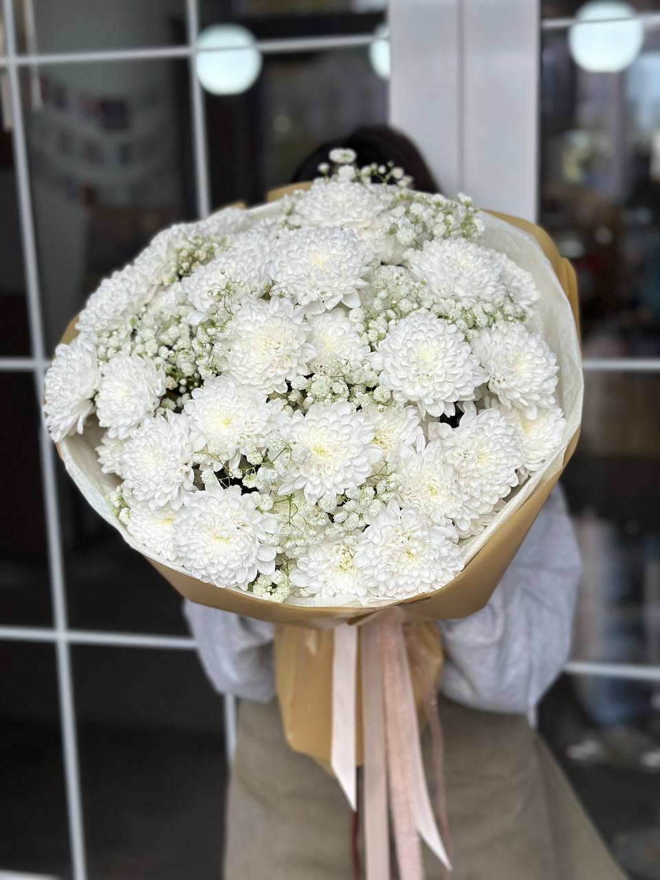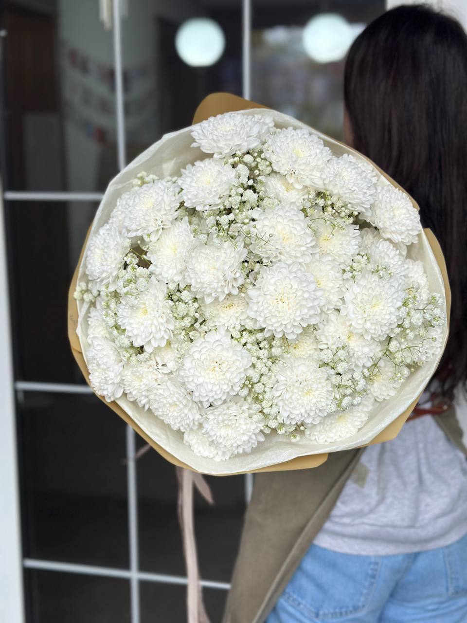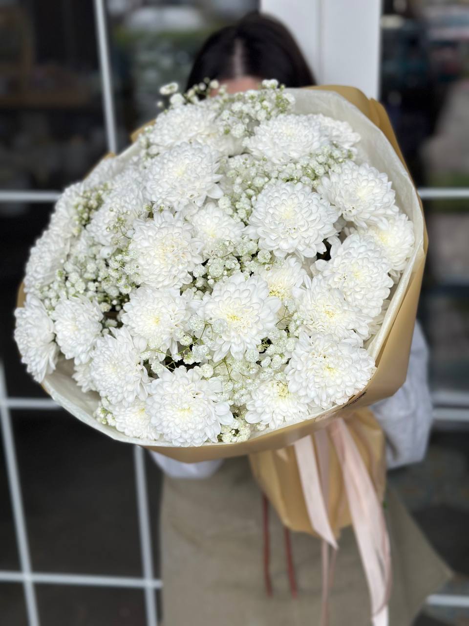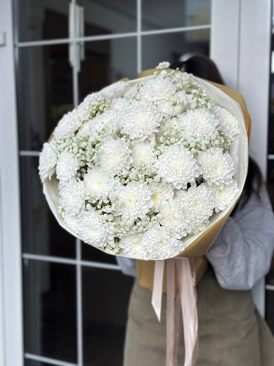 Хризантема кустовая "Алтай", гипсофила, оформление.