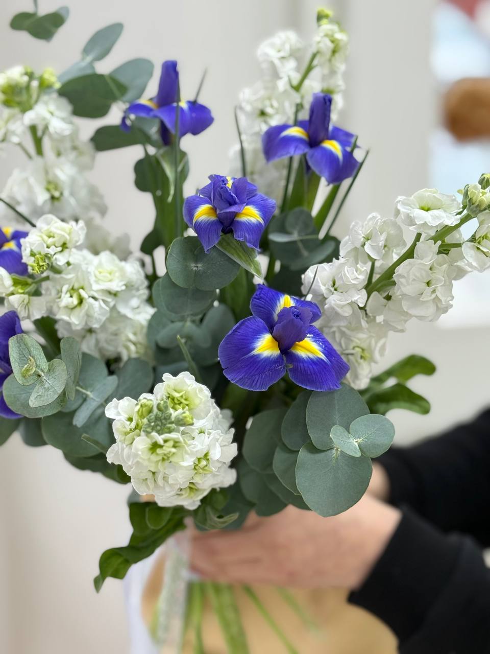 Букет с ирисами и маттиолами "Ранняя весна"