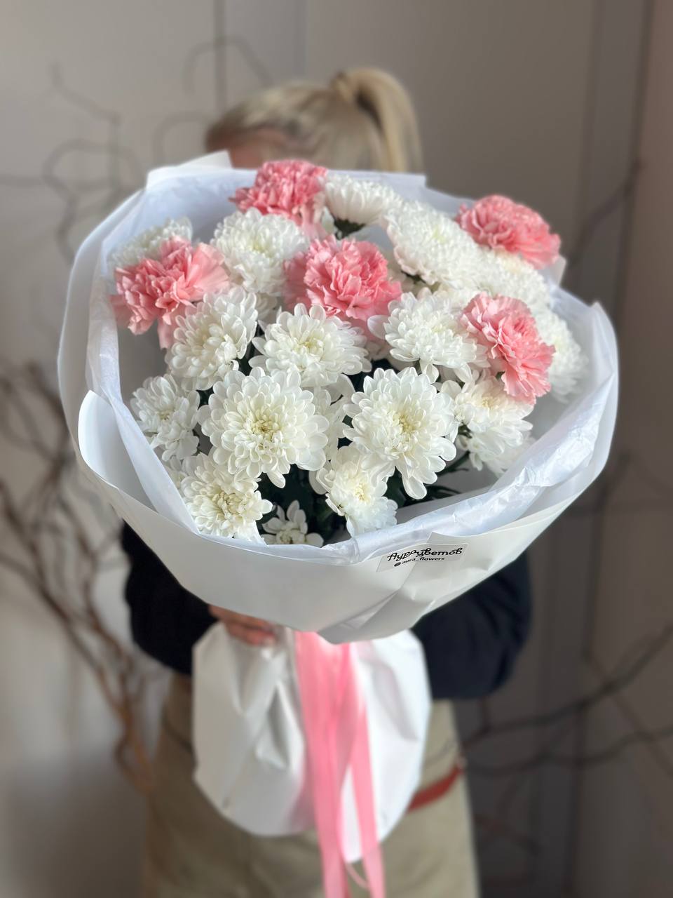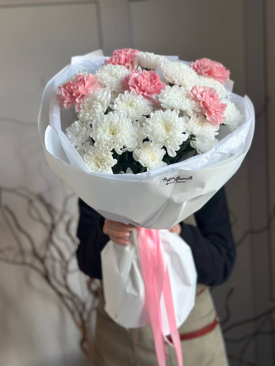 Букет с диантусами и хризантемами "Твоя улыбка"