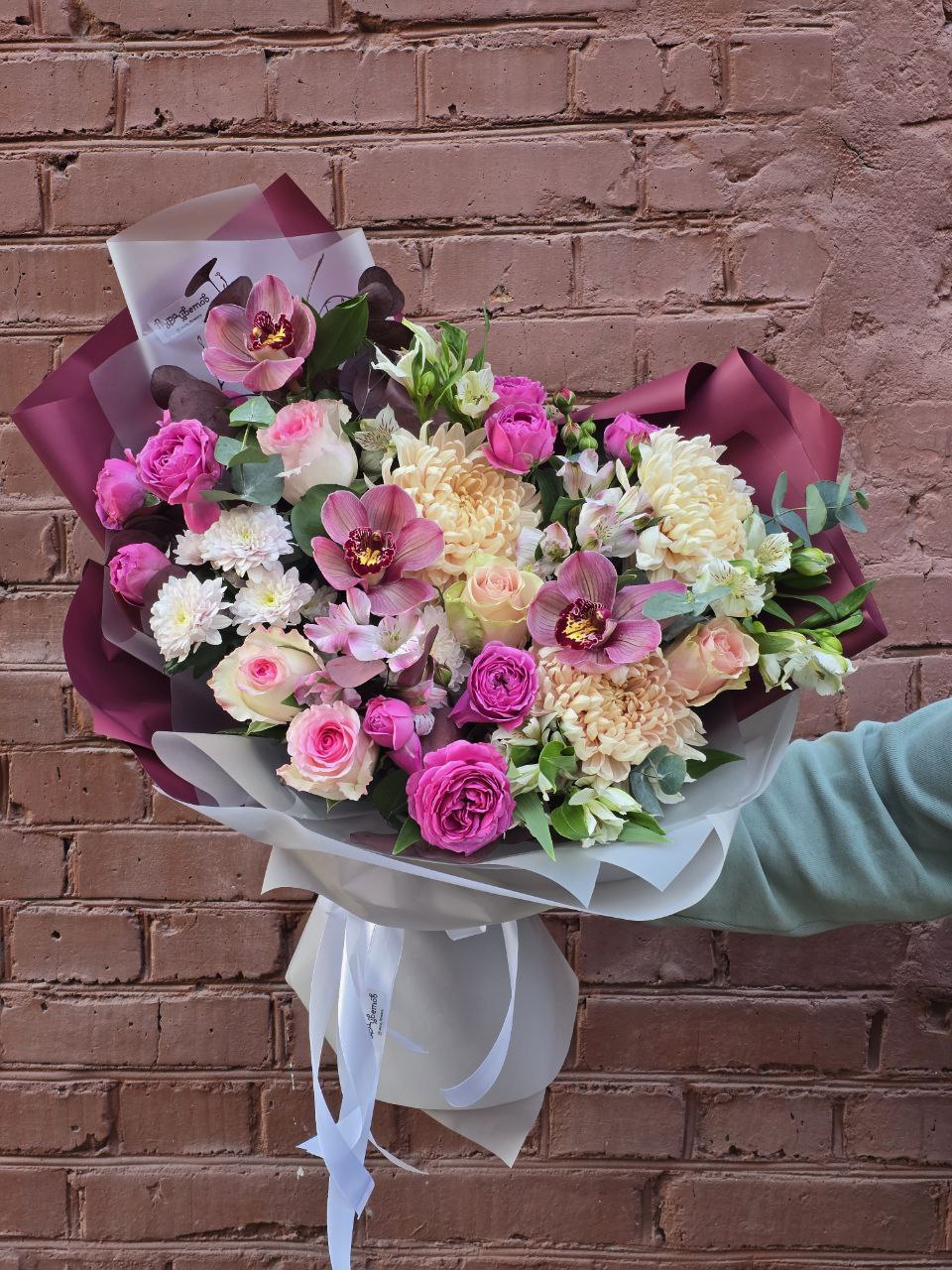 Хотим напомнить, что все наши букеты и композиции это ручная работа.  Невозможно повторить в точности из-за природных особенностей и сезонности цветов, но мы  сохраним размер, палитру и общее настроение, с  любовью и вдохновением.