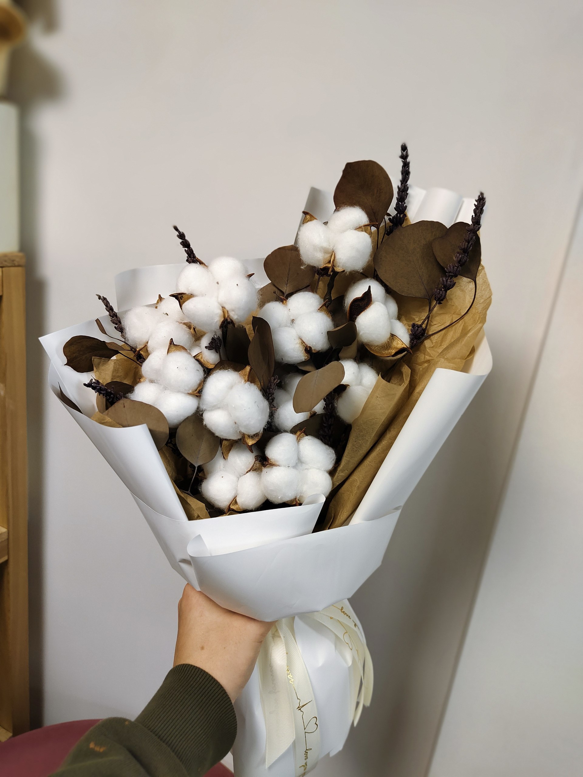 Хлопок, сухоцветы микс, оформление.