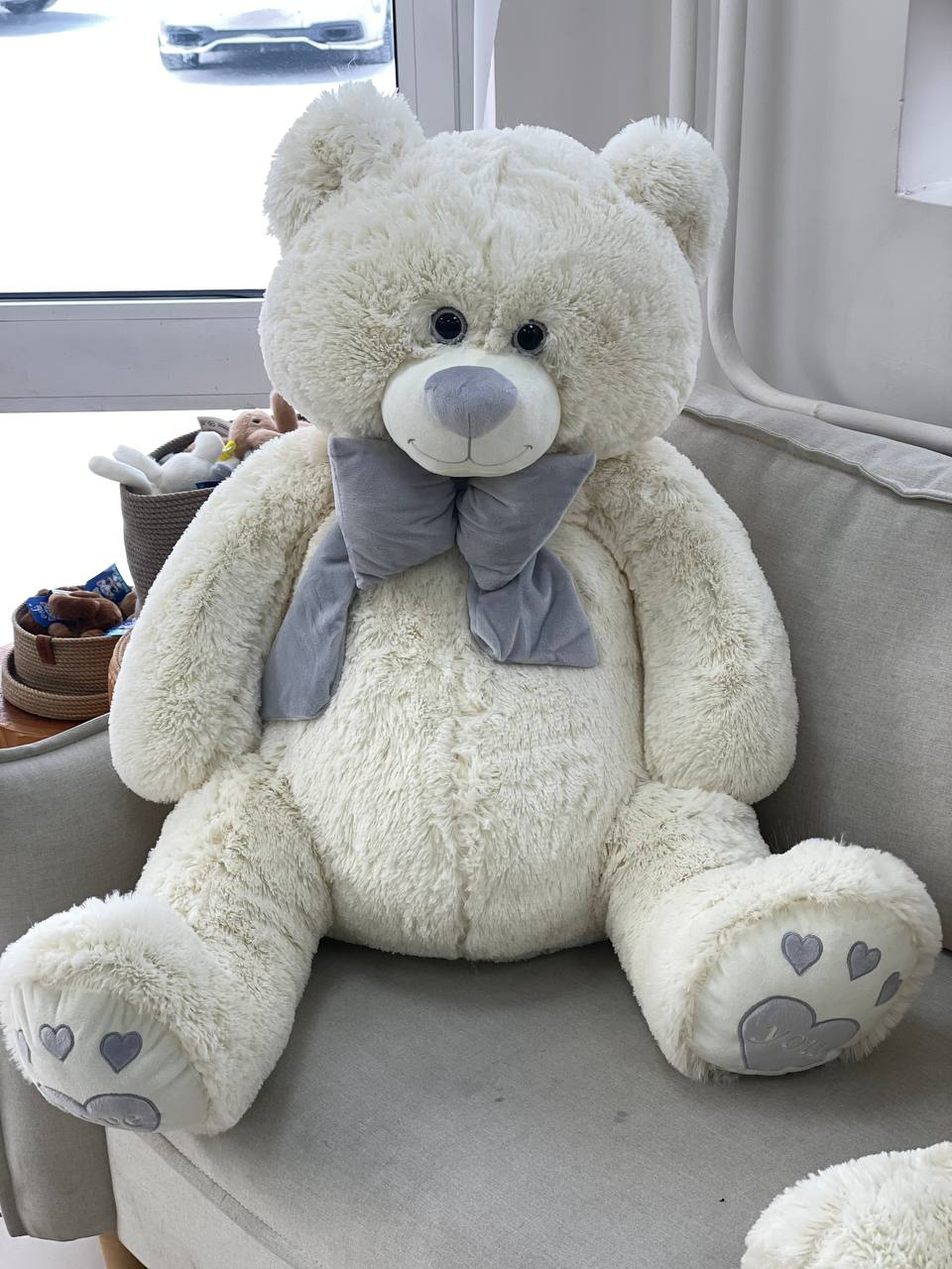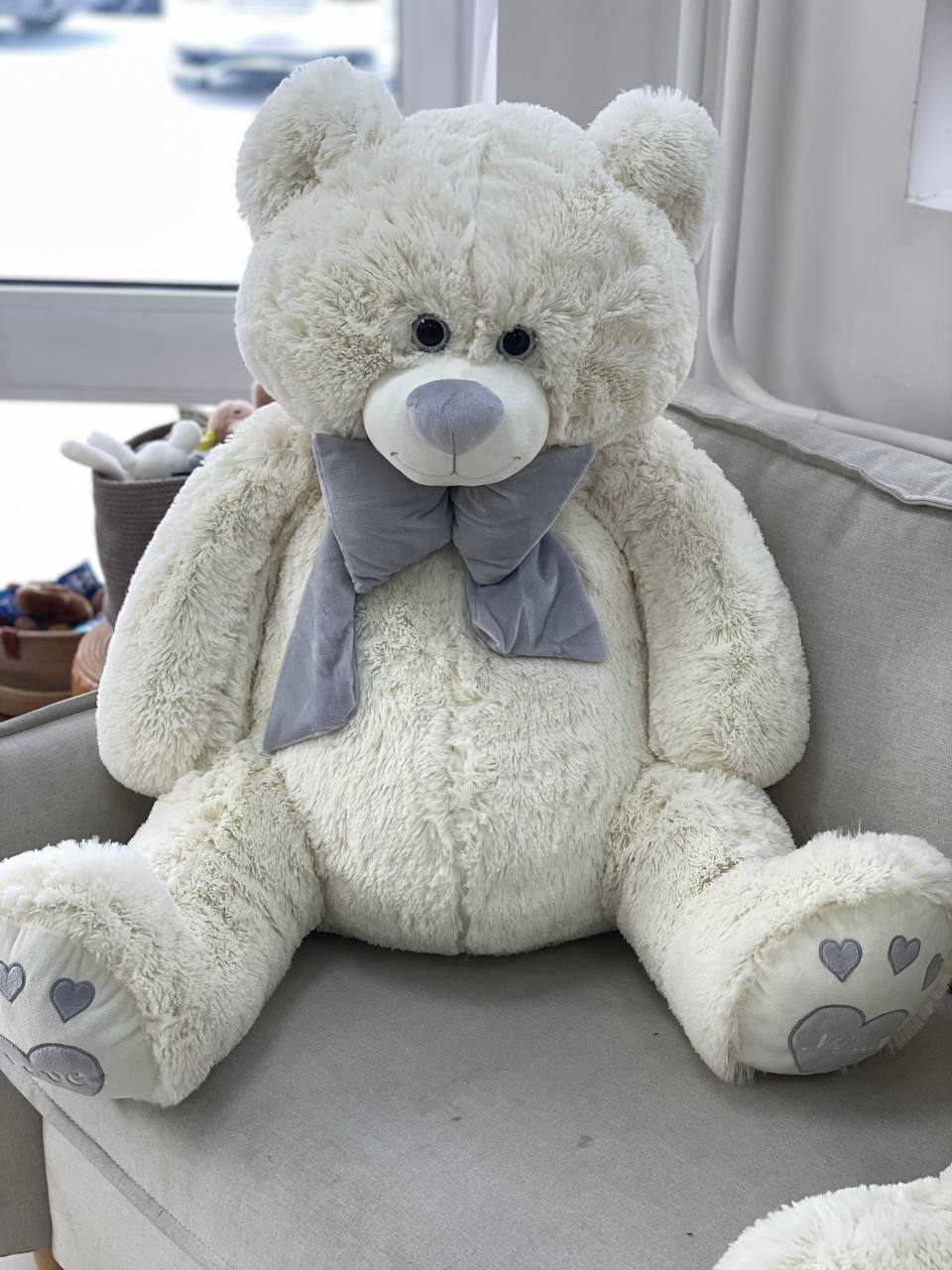Мягкая игрушка "Медведь Пьер с бантом", латте, (130 см)