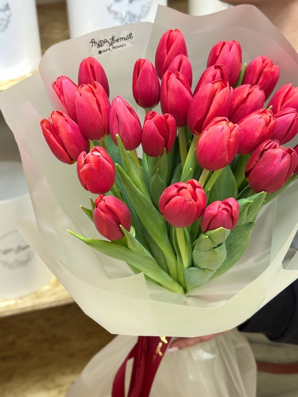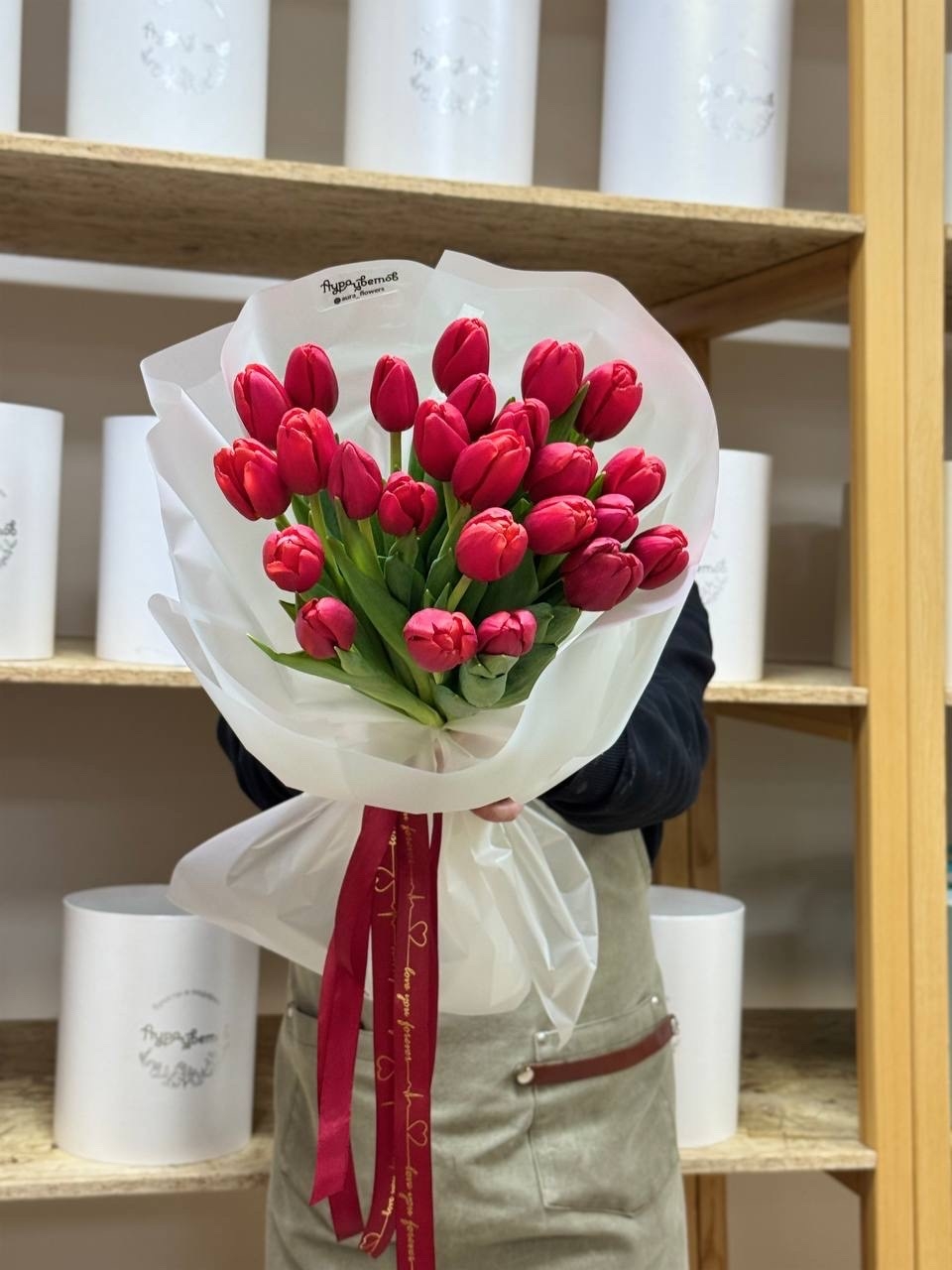 Букет из 25 классических красных тюльпанов